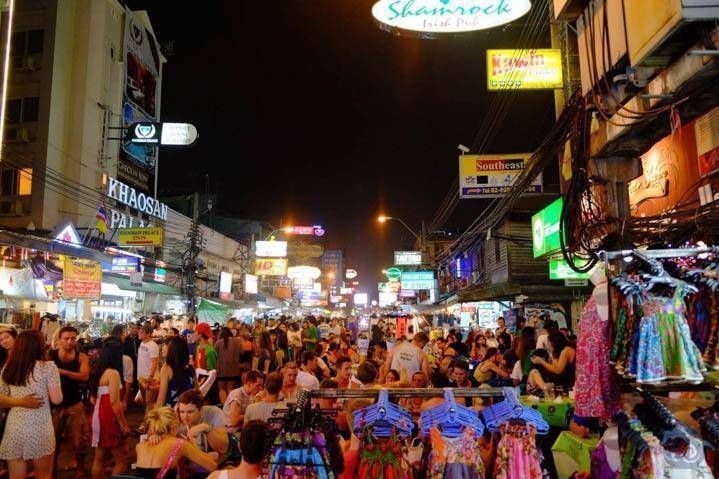 曼谷考山路,白天是文艺的浪漫小街,夜晚变身成丰富多彩的酒吧街。