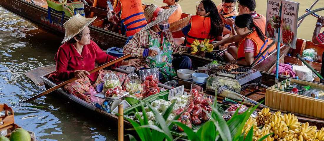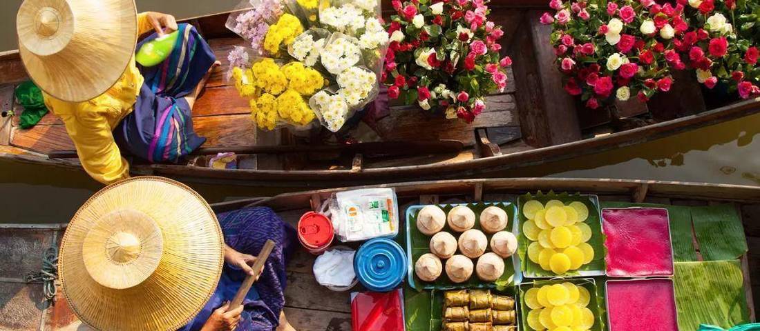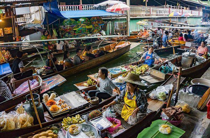 逛腻了商城那就来曼谷的水上市场逛逛,在水上的市场,你可以一边乘船一遍购买自己想要的特色礼品。