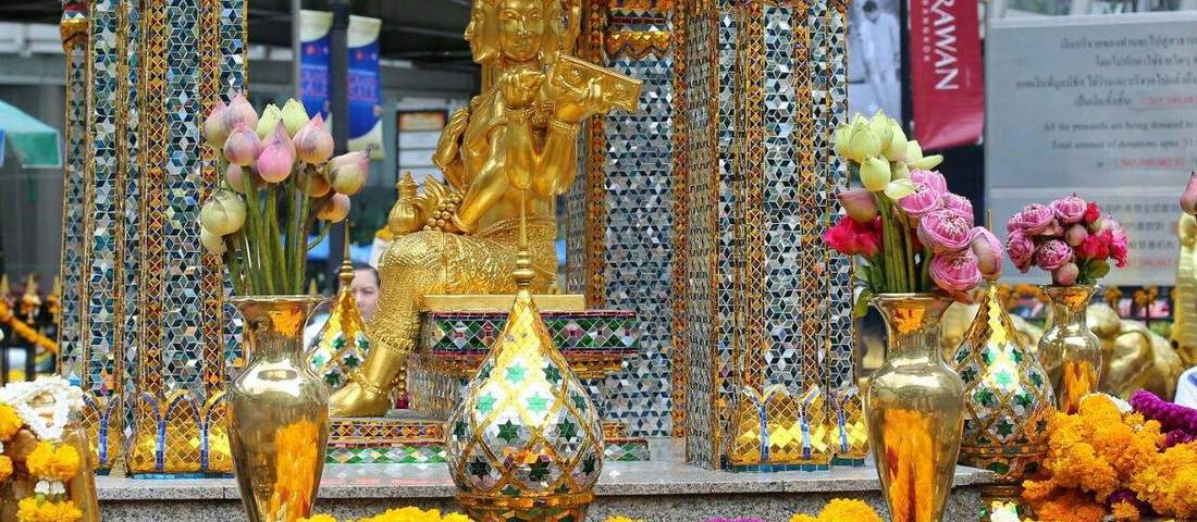 在曼谷,随时随地都可以感受佛教文化,可以去酒店周围人称“有求必应”的四面佛拜一拜。