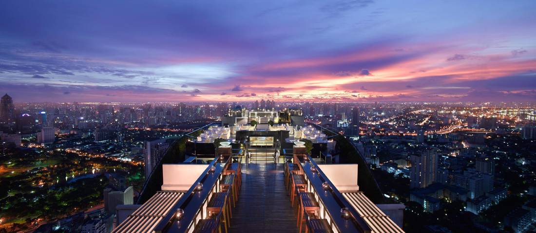 位于61层的酒吧,以船型设计为主,毫无遮挡的360°完全开放视角俯瞰曼谷最完美的风景,将曼谷的白天、落日、黄昏、夜晚尽收眼底。