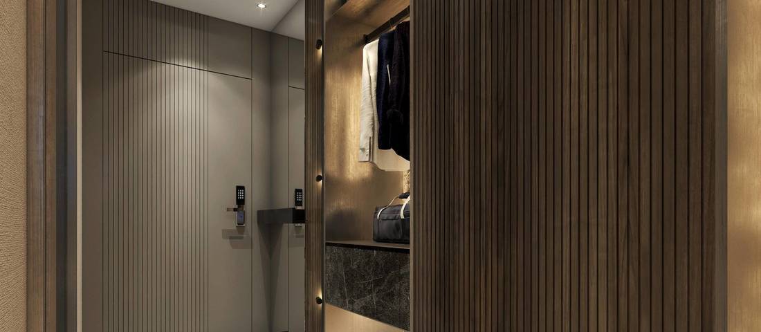 设计师在色调和使用的材质上大胆地运用了在日常住家设计中不会常用到的材料,更能表达出入住酒店不一样的智能的体验感觉,这种风格深受喜欢新鲜感的年轻男女人士欢迎。