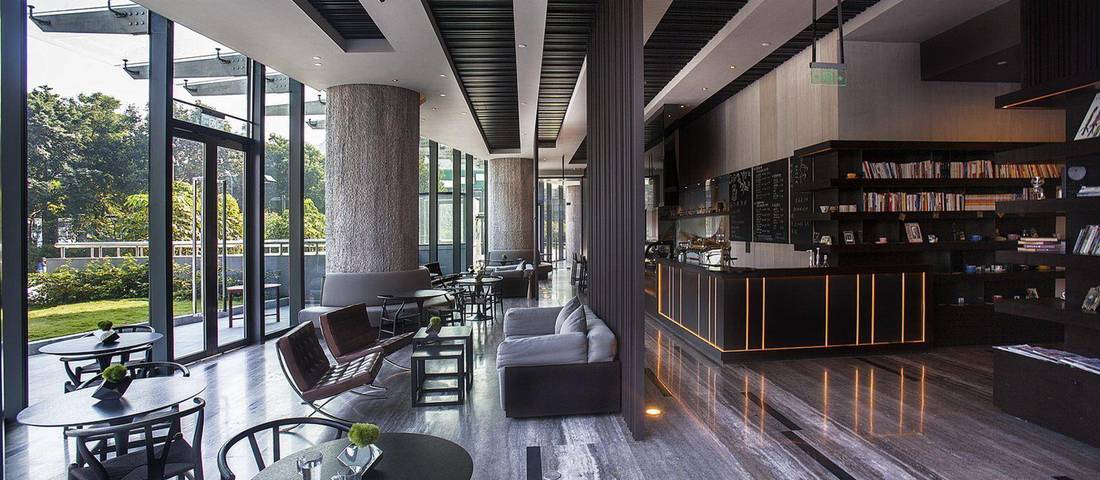 酒店由德国 HID 新一代知名室内空间设计师 Mr. Manfred Haverkamp 设计,风格简约。大堂像是一个奢华社交的场所,作为酒店主要的活动空间。