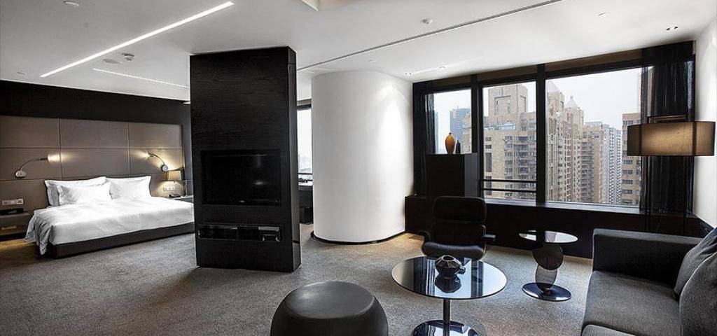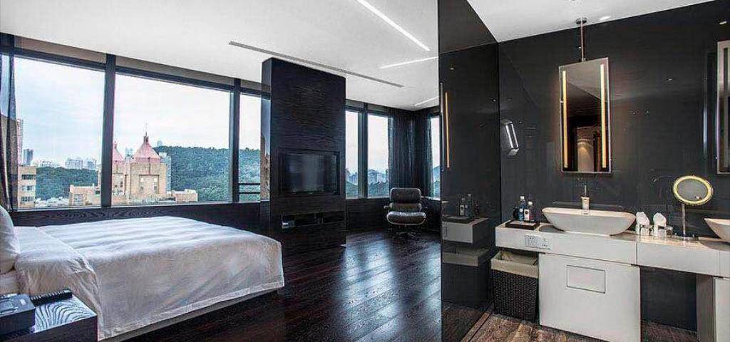 酒店客房设计以黑白为主题,以暗黑的低调色系为主,简约的设计又能与房内的艺术品碰撞出独特的艺术空间效果。