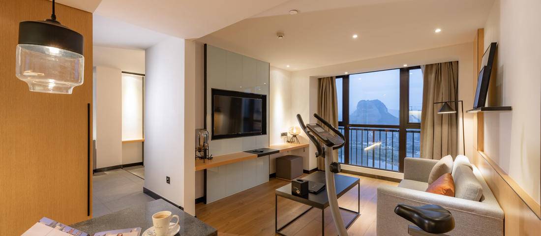 酒店拥有桂林稀缺的天然湖泊景,是一家休闲度假酒店,闹中取静,窗外可赏醉美麓湖风光,每个角度去欣赏,都是一幅赏心悦目的水墨山水画。