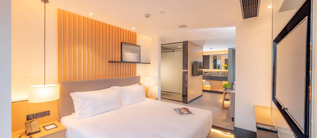 每个房间均采用智能客控系统,配备电动窗帘、背景音乐、mini吧、胶囊咖啡、古树茶、花茶,追剧必备的小米电视。