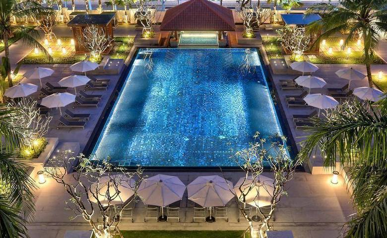 酒店的泳池干净清澈,现代化的泳池,四周可以观赏曼德勒皇宫和曼德勒山的风景。