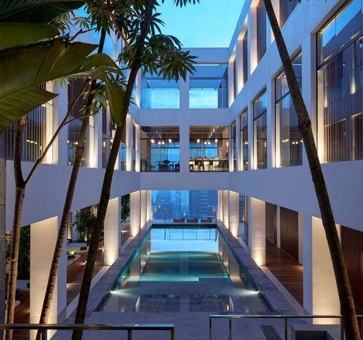 位于室外庭院之上的两层是特色餐厅、鸡尾酒酒吧和屋顶露天酒吧。围绕着室外庭院的各个空间以各自的功能制造出惊喜的体验,为酒店注入丰富的活力。
