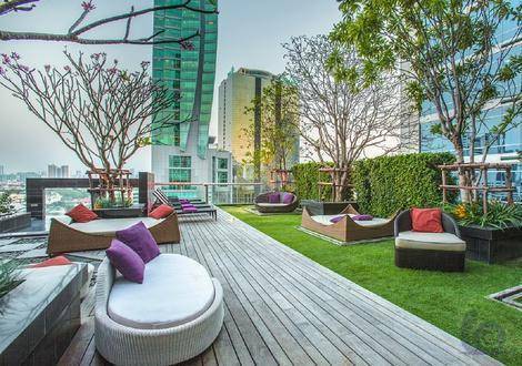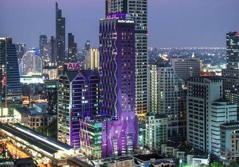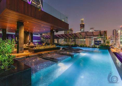 酒店的设计风格偏現代化,而酒店本身亦都是一间网红酒店。酒店 11 樓設有無邊泳池,38 樓有天台酒吧,大家可以在享受美酒之餘,居高臨下欣賞曼谷的美麗夜景。而酒店對面亦有一間歷史悠久的泰國菜餐廳藍象,好多人到曼谷旅遊都會選擇去藍象打卡