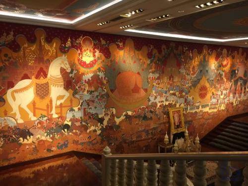 刚到酒店的时候,门前的水池无不彰显着酒店的高档,惬意的微风带着水池的祝福漂浮在我身边,而后看到酒店的具有泰国风情的艺术品,最吸引我的还是那一面壁画,精美又壮观。