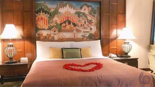 客房以柚木和泰国丝绸装饰,营造出富含泰国文化的雅致氛围,配有平板电视、DVD播放机以及配备了雕刻精美的木制家具的豪华独立浴室。