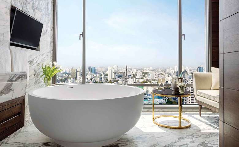 客房的浴缸是靠窗边的,一边泡澡一边看曼谷城市美景,十分惬意。酒店还提供免费的早餐,论精巧程度也相当不错,服务态度也超好,给人一种宾至如归的感觉。