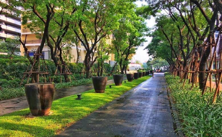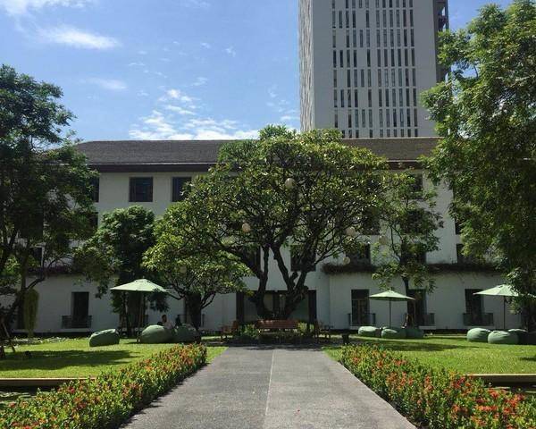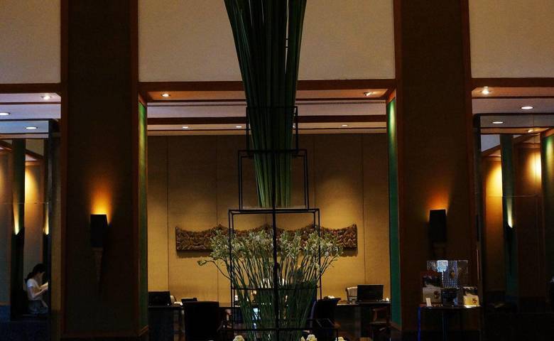 酒店位于繁华的沙吞路上,正门进来经过这条林荫道才到达酒店,因此也算是闹中取静,酒店的设计仿佛置身于大自然,还有许多新奇的摆件观望。
