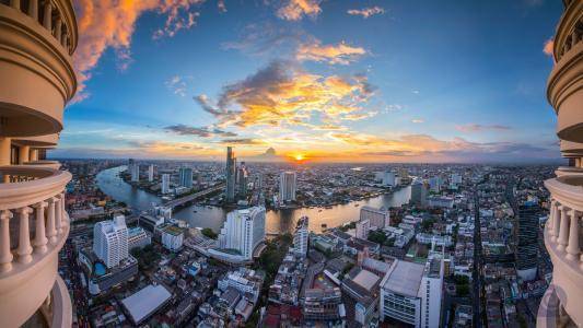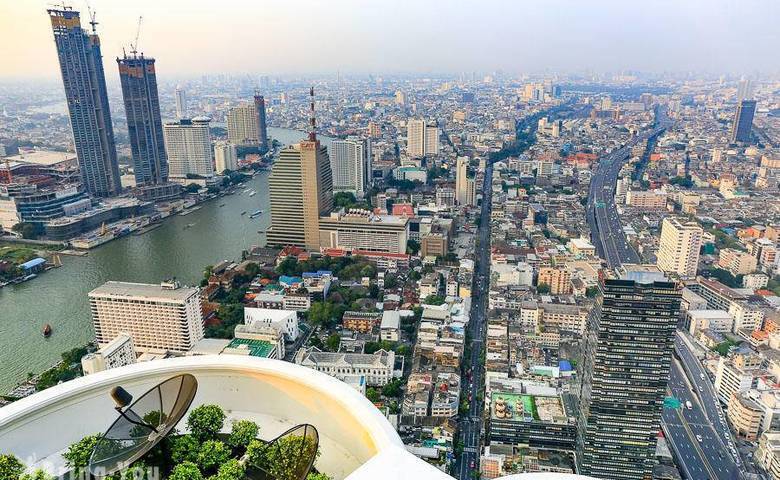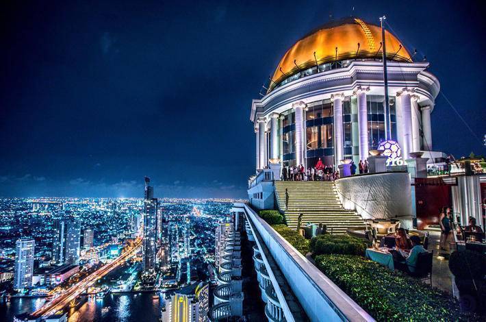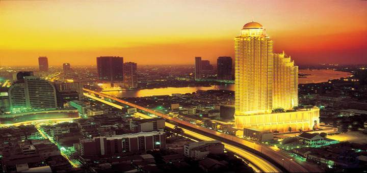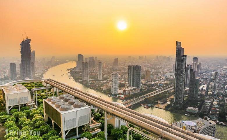 悠然的曼谷河畔,这里流水淙淙,花红柳绿,具有美丽的自然风景,在酒店楼顶的酒吧可以将一切美景尽收眼底。感受从灰蓝-金黄-紫色-深蓝的天空魔术。