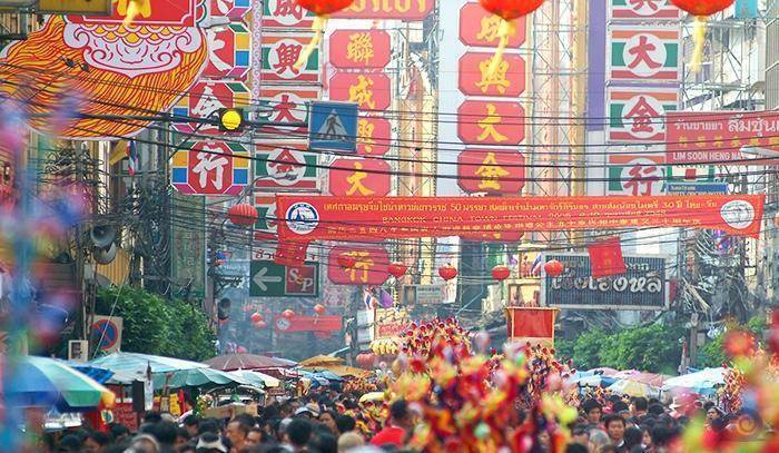 华人和泰人均喜欢过春节,在唐人街及北榄府,街道两旁会摆满各种应节食品、物品,还有舞狮、舞龙、游街盛会,以及“中国小姐”选美会。