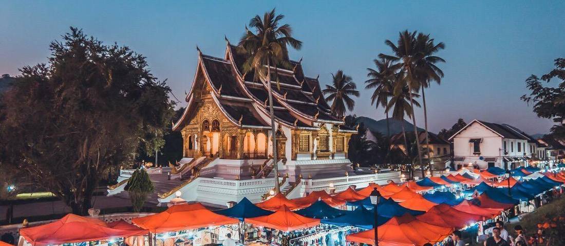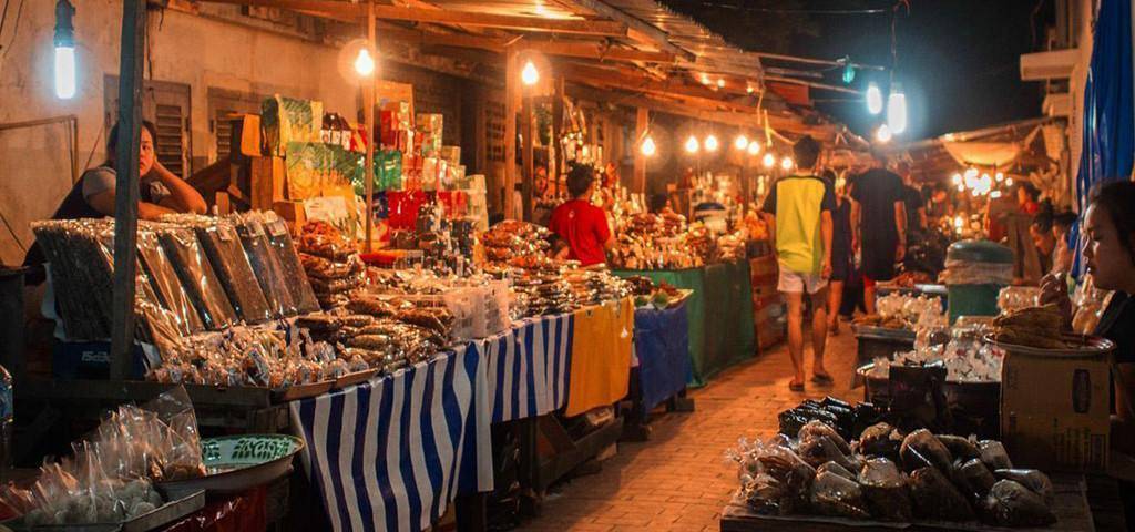 夜晚的琅勃拉邦苏醒了。这里灯火辉煌,人流不断。纸灯笼发出微光,柔和却照亮了整条街道。