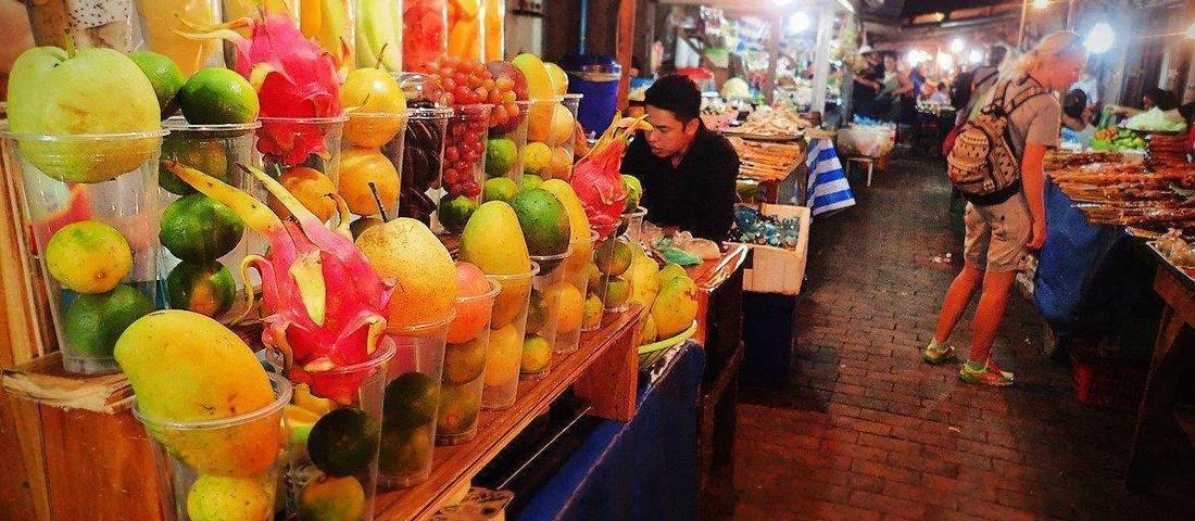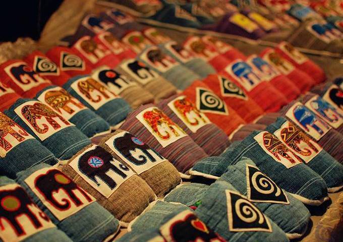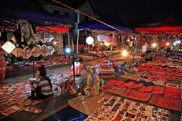 琅勃拉邦夜市上有很多卖老挝特色工艺品的摊位。