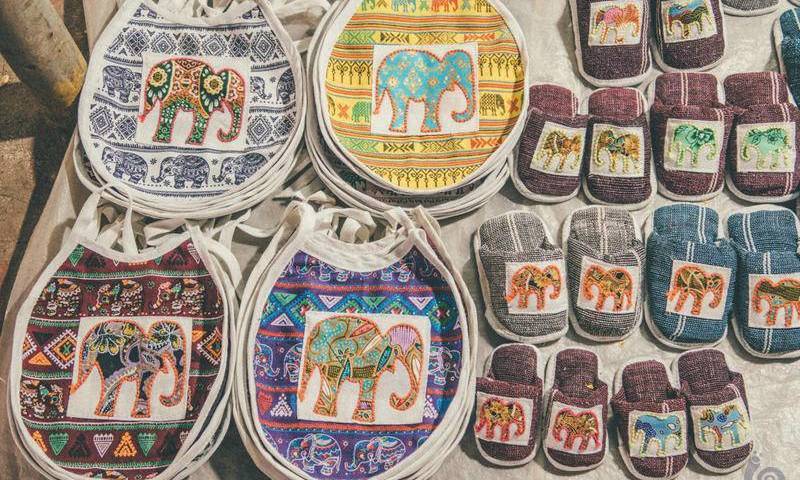桑叶纸灯笼、各色纺织品、极具特色的玩偶、佛教题材的手工画等,让人流连忘返。