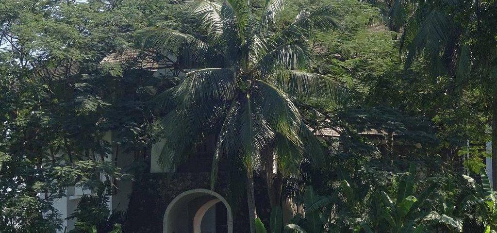 四周的草坪被修剪得很整齐,热带植物茂盛,有的还剪出了造型。
