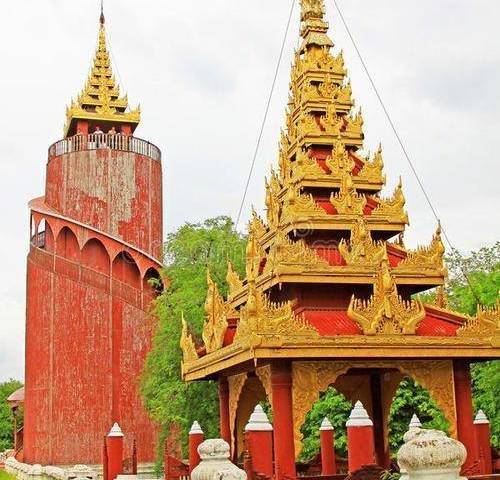 皇宫有一个高三十三米的瞭望塔,爬上一百二十级楼梯后,便可鸟瞰整座皇宫及曼德勒市的景色。