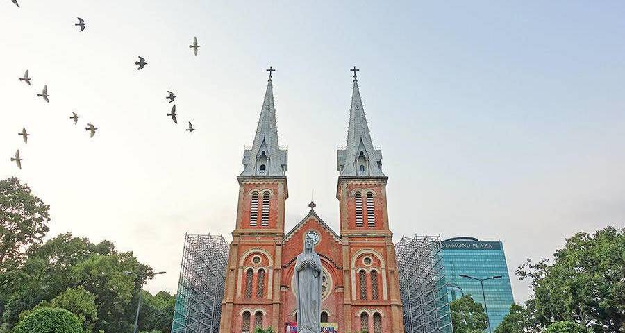 法国殖民时期为越南留下许多珍贵的历史建筑,也是当代越南最火的旅游景点,教堂就是其中之一。