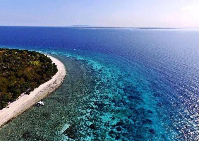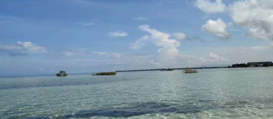 处女岛的海水十分的干净,是淡淡的青色、绿色、墨绿、蓝色逐渐变化。