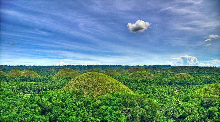 1268座小山被晒成了棕黄色,所以形状和颜色看起来酷似巧克力,听名字是不是很有食欲?这里还曾是《哈利波特》电影的取景地。