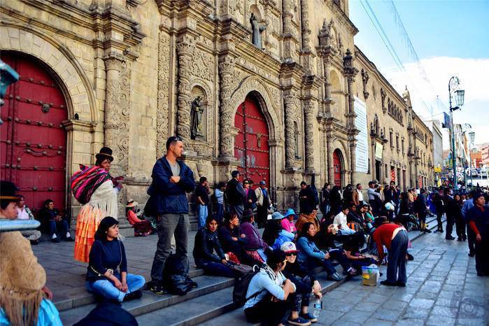 【Day3 】拉巴斯值得参观的主要地方基本上都集中在中城。我们先坐车去了穆里略广场,然后在市区徒步走到圣弗朗西斯科大教堂,在教堂四周溜达了一圈,看到当地好多警察在那里集合,也不知在搞什么名堂;