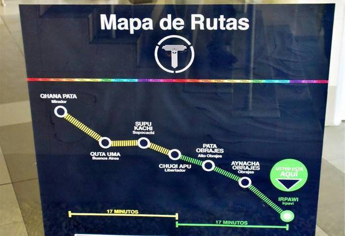 缆车行程分成两段,第一段为绿色线路,大约行驶17分钟;第二段为黄色线路,同样行驶17分钟。缆车全程票价为玻利维亚货币3元(约合人民币2.8元)。超级便宜的有木有!