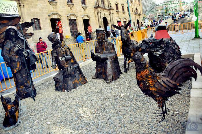 从教堂出来后看到在广场上的一角正在布置一个用铁皮塑造的神像展览。