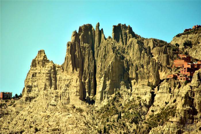 【Day2 拉巴斯月亮谷】拉巴斯整个城市地处玻利维亚高原东部拉巴斯河谷地带,周围有山峰耸立。这些山峰是灰褐色的,看上去像是砂石岩,有很多处山崖壁立千仞,像刀削斧剁般,蔚为壮观。正是这些山峰为拉巴斯遮挡住了高原寒流,使得这座城市温暖了许多。
