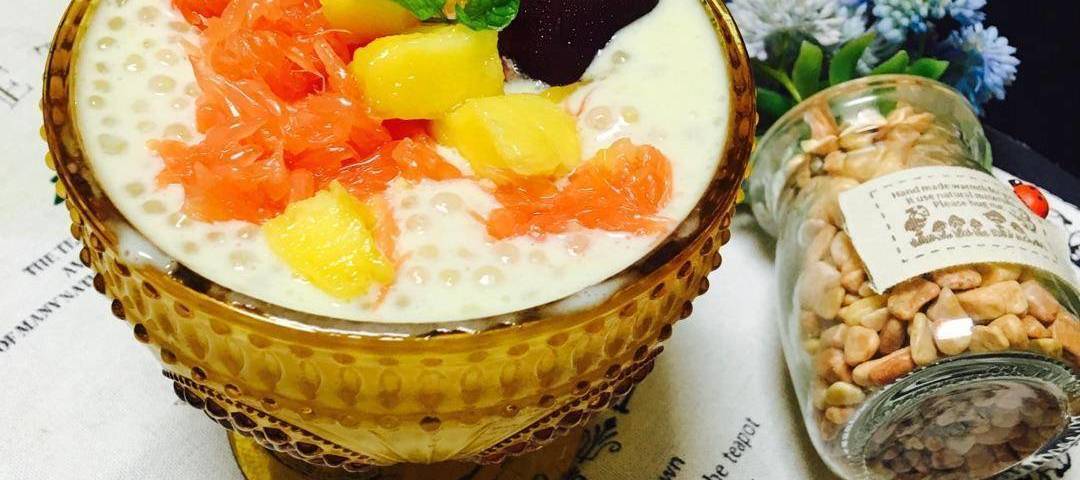 杨枝甘露指的是一种港式甜品,主要食材是西柚、芒果、西米,主要烹饪工艺是煮。这是一道非常有营养的甜品哦!