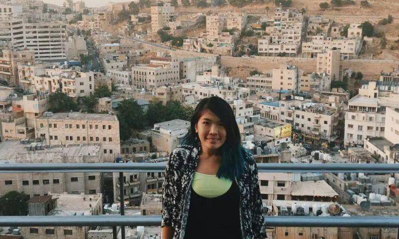 她的Ins只有一种照片,即把世界各地当背景,前面是当地最受欢迎的食物。到现在为止,她已经打卡了几十个国家。