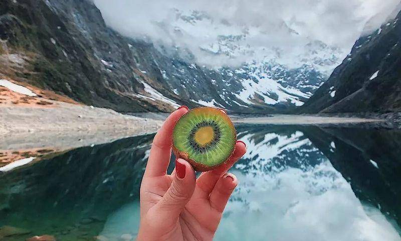 奇异果又叫几维果,几维是新西兰的代称。可实际上,奇异果是从中国传过去,由新西兰发扬光大的。站在新西兰国家公园,对面便是玛丽安湖,手里握着奇异果的感觉真是太棒了。