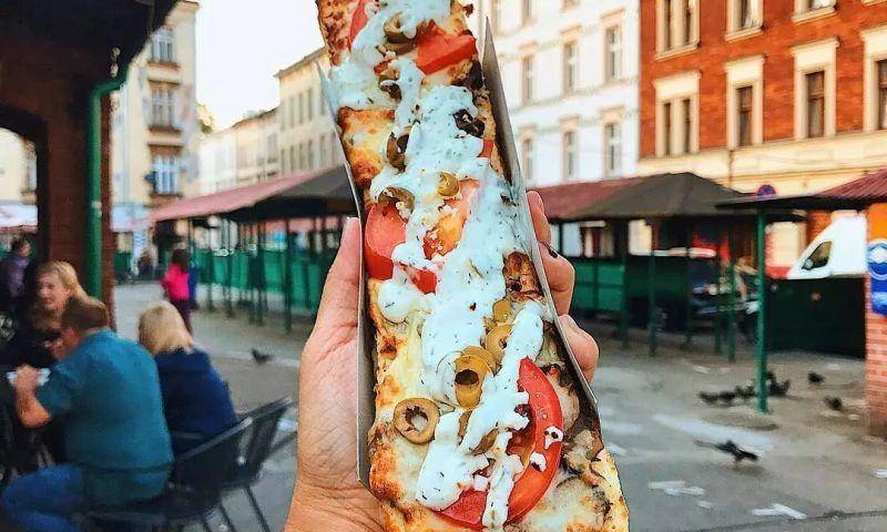 这是一根在波兰卖的法式面包,却可以选择希腊风味。上面的酱料随便选择,夏威夷风味也很出名。放进烤箱烤脆后就能吃啦,而且这么大一根,仅需10元人民币。