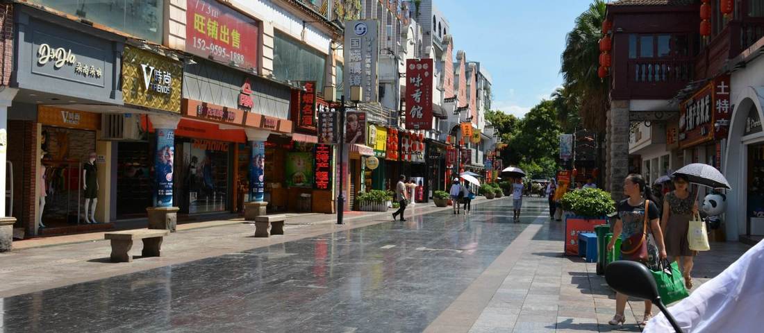 桂林市正阳步行街位于桂林市中学,既有阳朔西街的情调,又有北京王府井的热闹,一路上还有各种小摊贩和小吃。市中心的正阳步行街的尽头就是杉湖,也可以先逛街在游玩两江四湖。