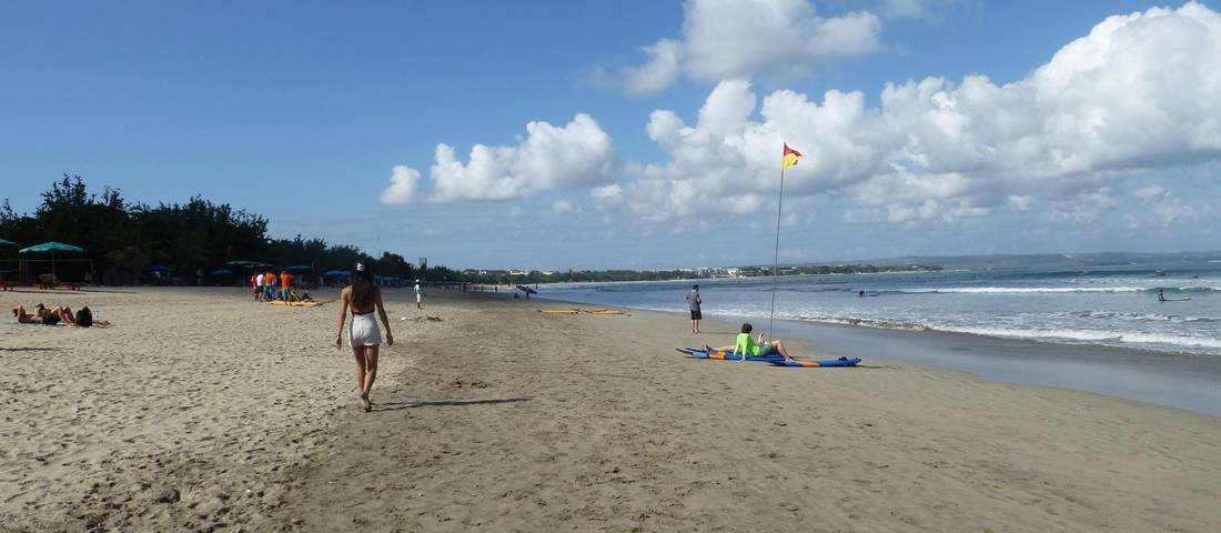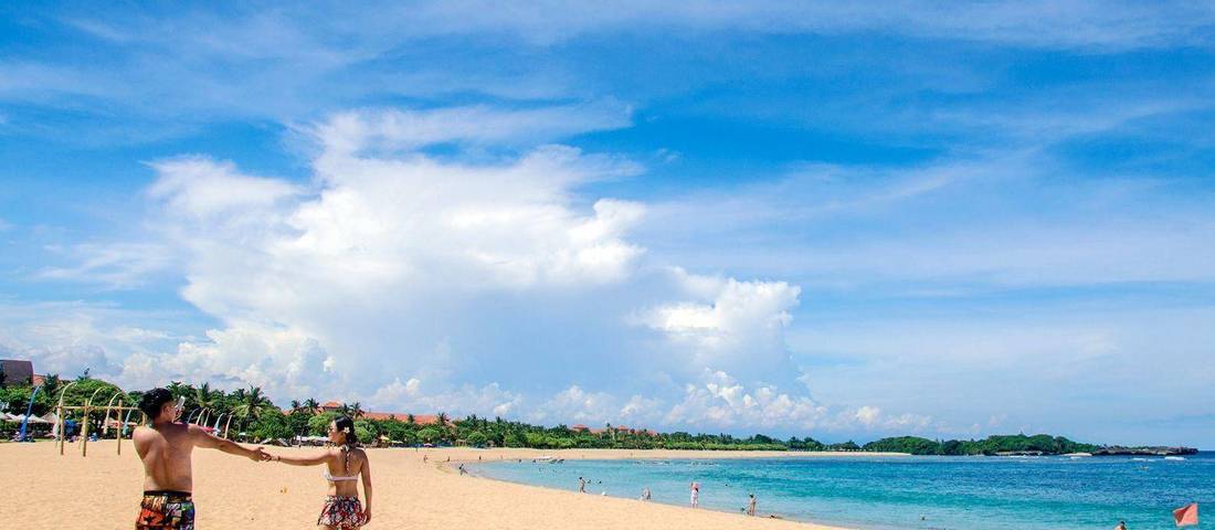 库塔海滩,号称巴厘岛最美丽的海岸,海滩海水清澈,沙粒洁白细腻,有许多外国人在此学习冲浪,附近就有热闹的商业街,各种巴厘传统手工艺品和民族服饰等。