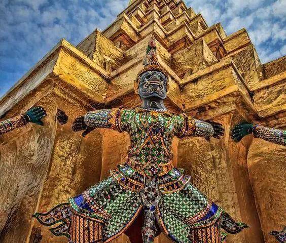 大皇宫位于曼谷市中心区 泰国大皇宫有着异域风情的古建筑群 那一处处亭台楼阁、个个金碧辉煌、流光溢彩 一处处佛塔宝殿,殿殿造型独特、装潢考究 建筑汇集了绘画、雕刻和装怖艺术的精华。