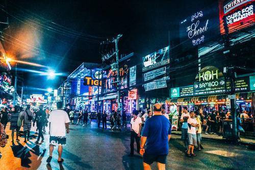 每到夜晚,场面火热、热闹非凡的芭东酒吧街开始鲜活起来,满是风情的夜生活和嘈杂的音乐。