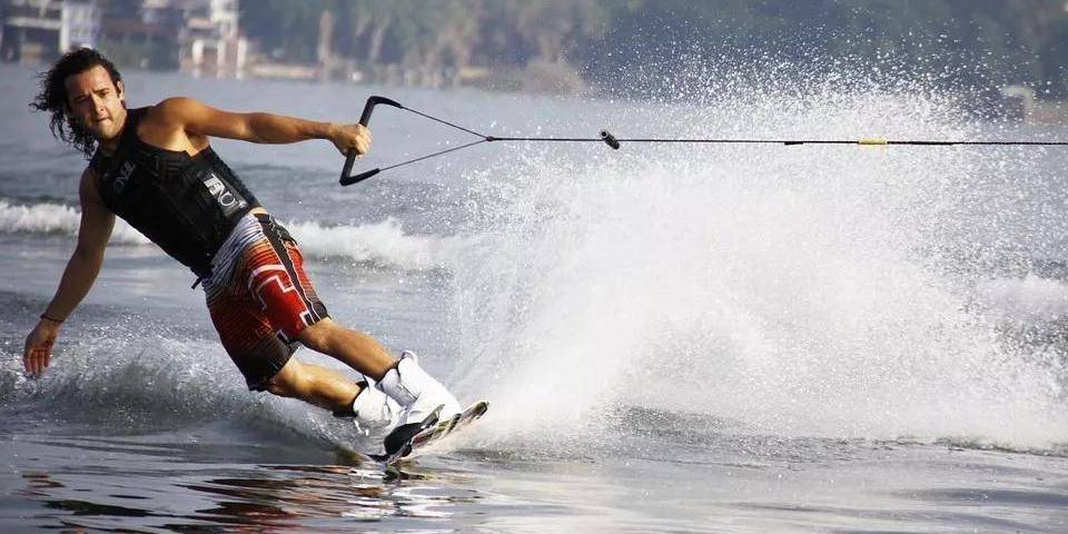 这项运动是一项非常令人兴奋刺激的运动,是由一艘船拖拽着滑水者沿着海面或者其他水面滑行。